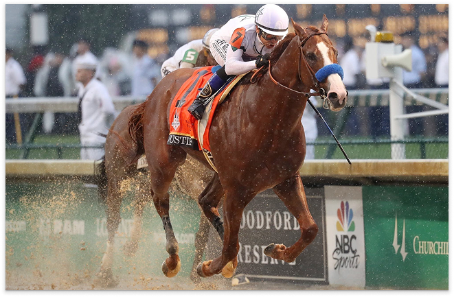 Justify winning the Kentucky Derby, the second race on his road to the Triple Crown.